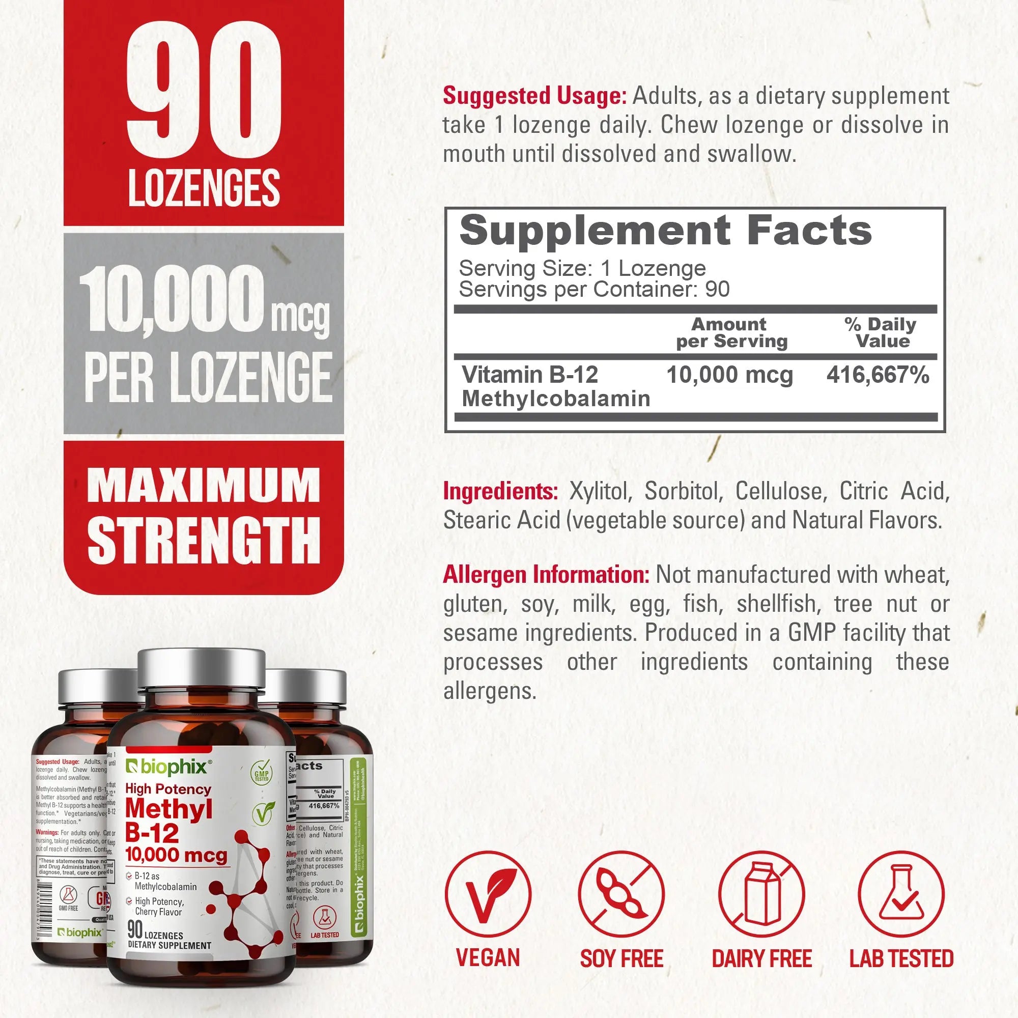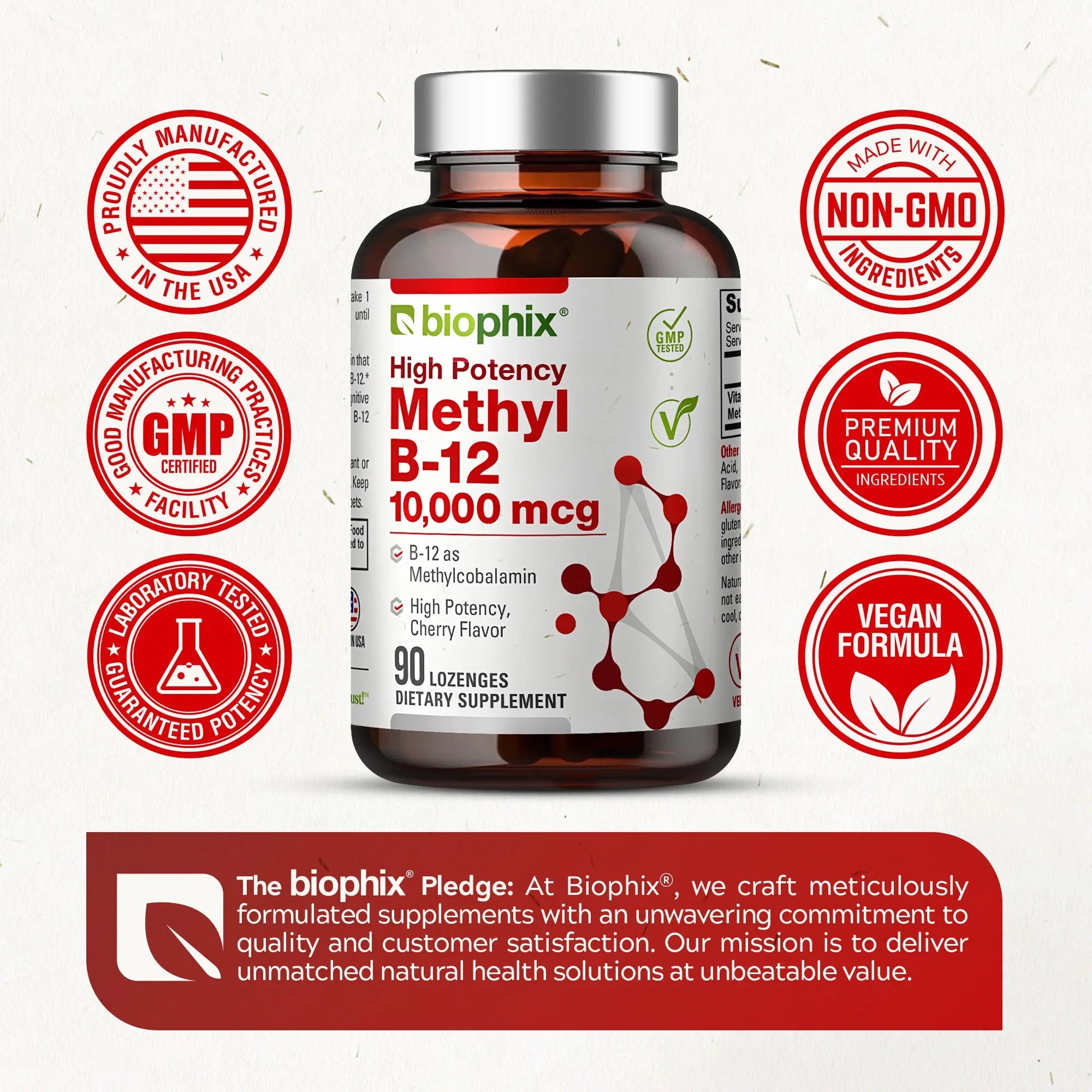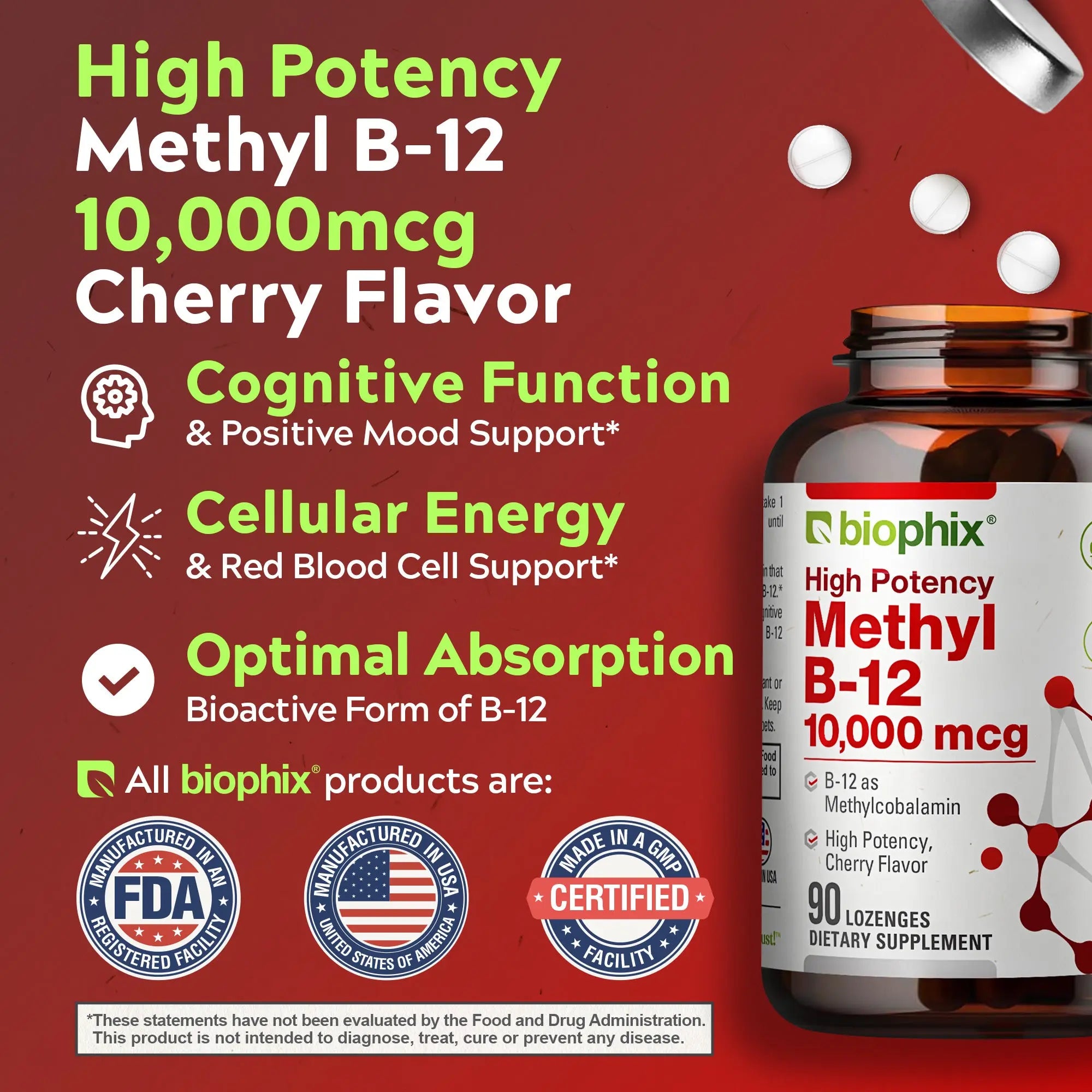 Biophix Methyl B-12 10,000 IU supports a healthy nervous system and cognitive function. Vegetarians/vegans typically require B-12 supplementation.*