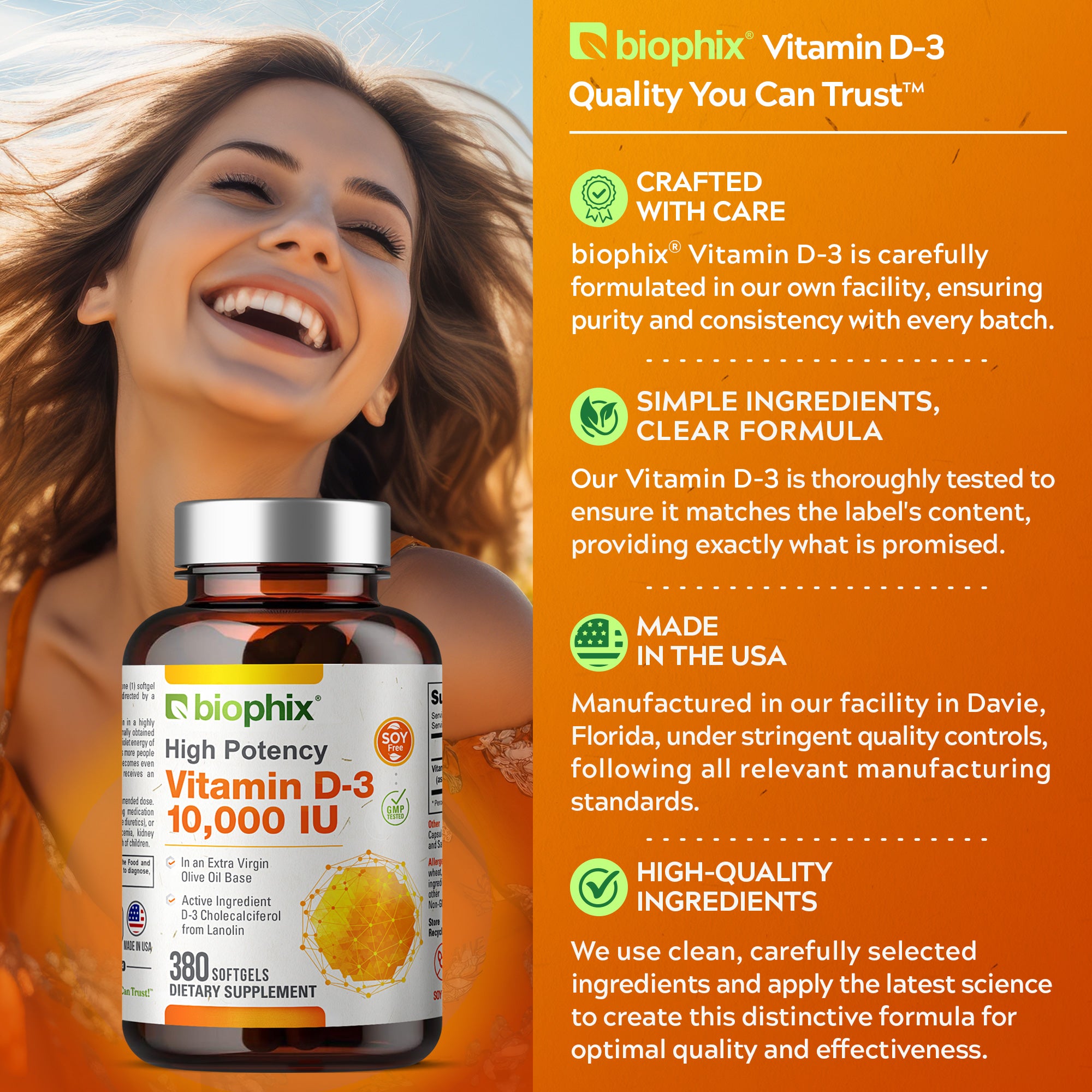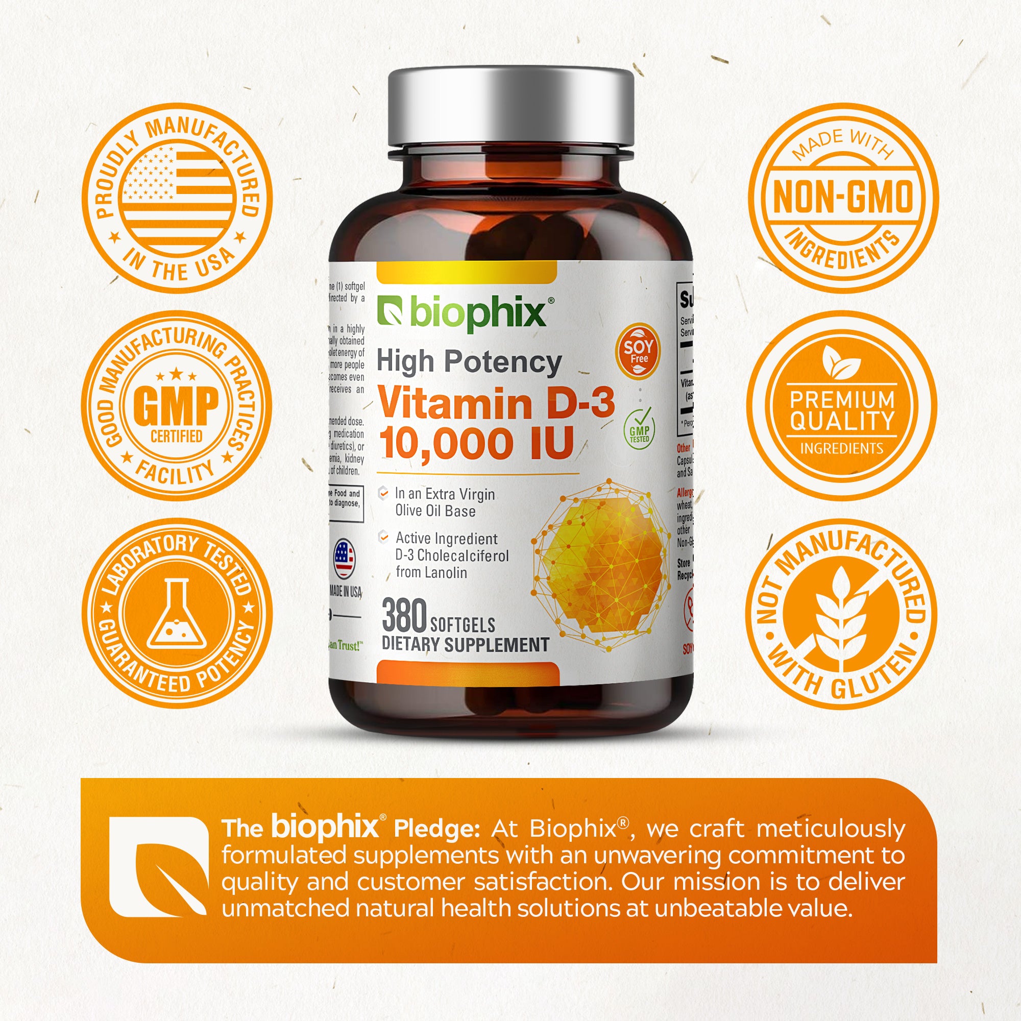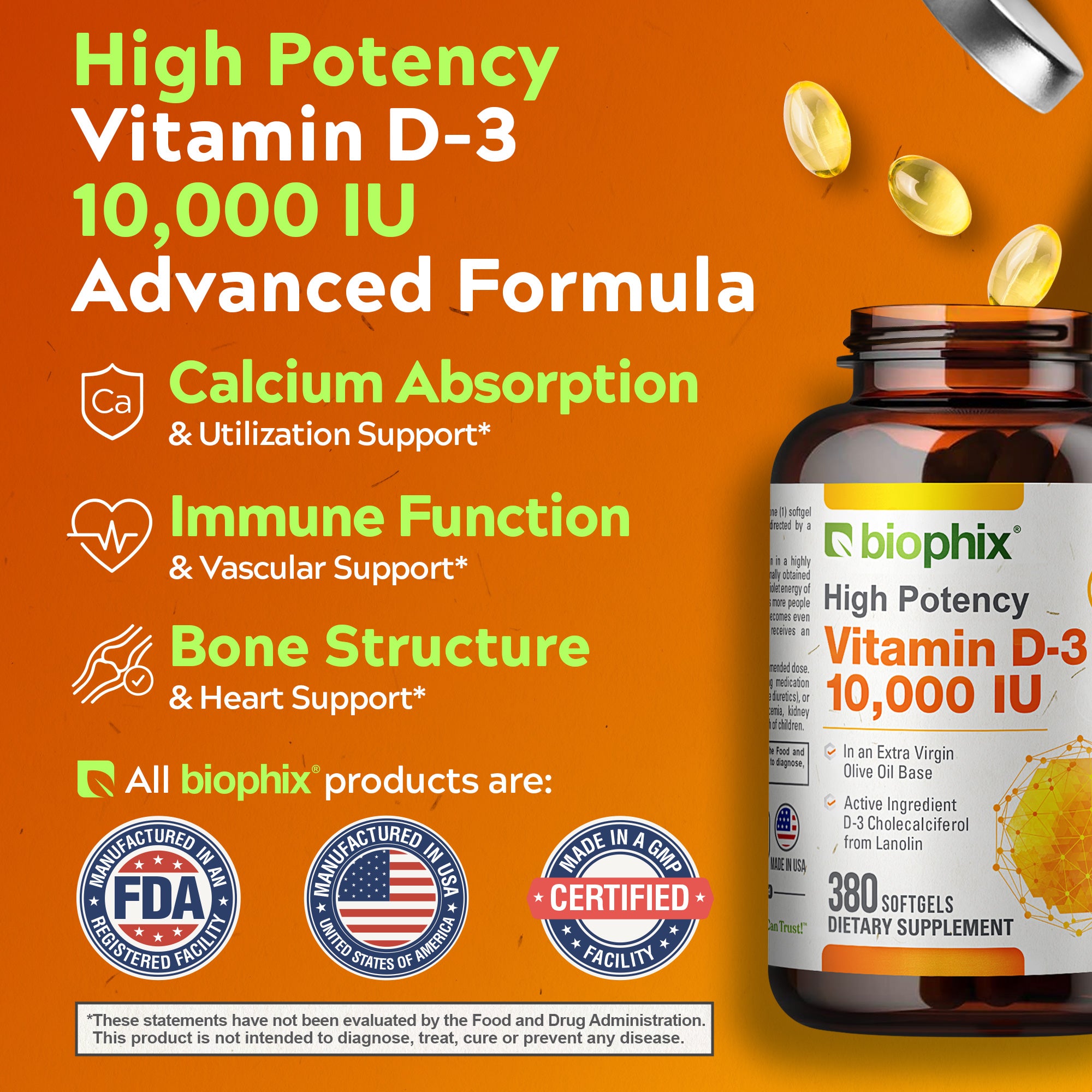 Biophix Vitamin D3 is available in 2000 IU, 5000 IU, 10000 IU and 50000 IU. Also available in Tablets, Capsules, Liquid Drops and Vegetarian Capsules. Search for Biophix D3 to see all available options.