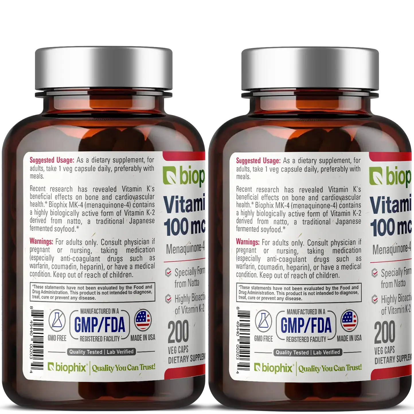 Research indicates that Vitamin K-2 may support healthy bones and cardiovascular health.* We included Alfalfa in our formula to provide additional support. Vitamin K2 and its dependent proteins have been discovered to be of vital importance for bone and vascular health.