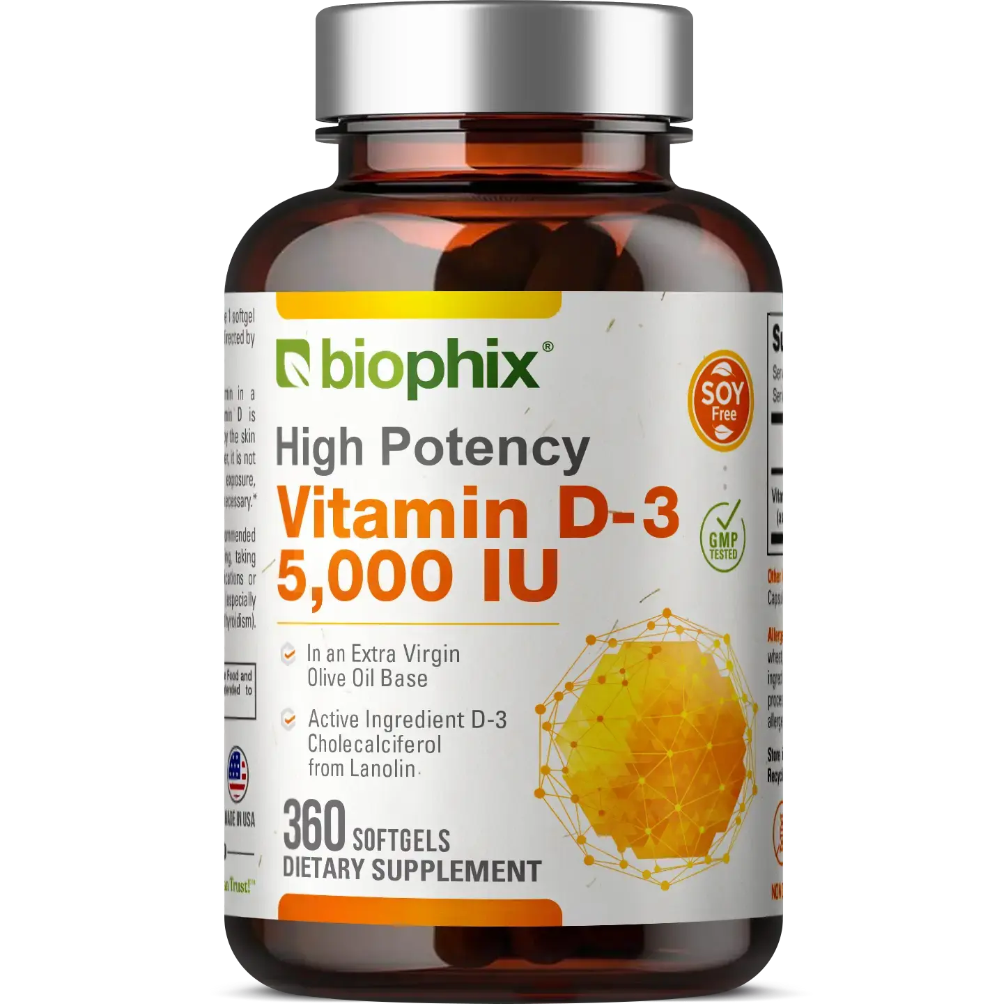Biophix Vitamin D3 is available in 2000 IU, 5000 IU, 10000 IU and 50000 IU. Also available in Tablets, Capsules, Liquid Drops and Vegetarian Capsules. Search for Biophix D3 to see all available options.