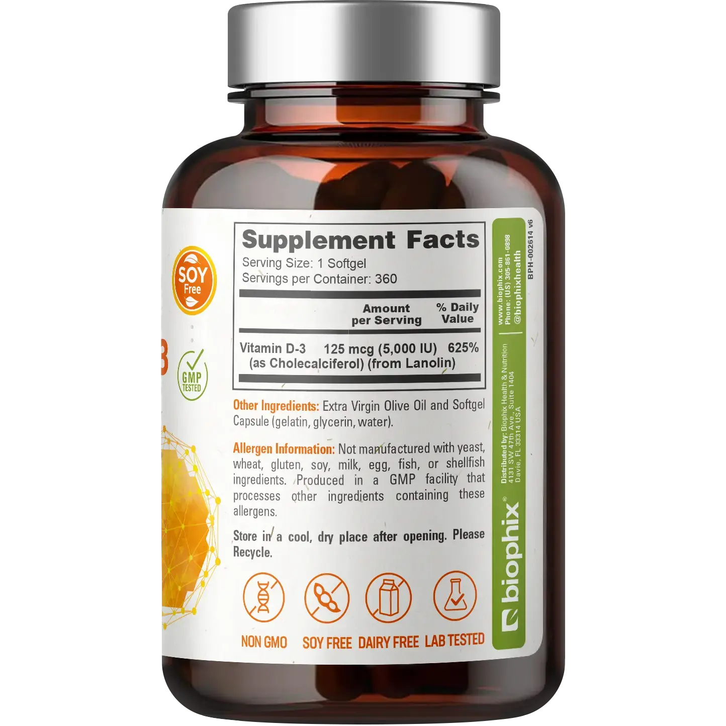 What makes Biophix Vitamin D-3 unique? Our Vitamin D-3 Softgels are corn free, non-GMO, soy free, and unlike most Vitamin D-3 softgels on the market, manufactured in an extra virgin olive oil base.