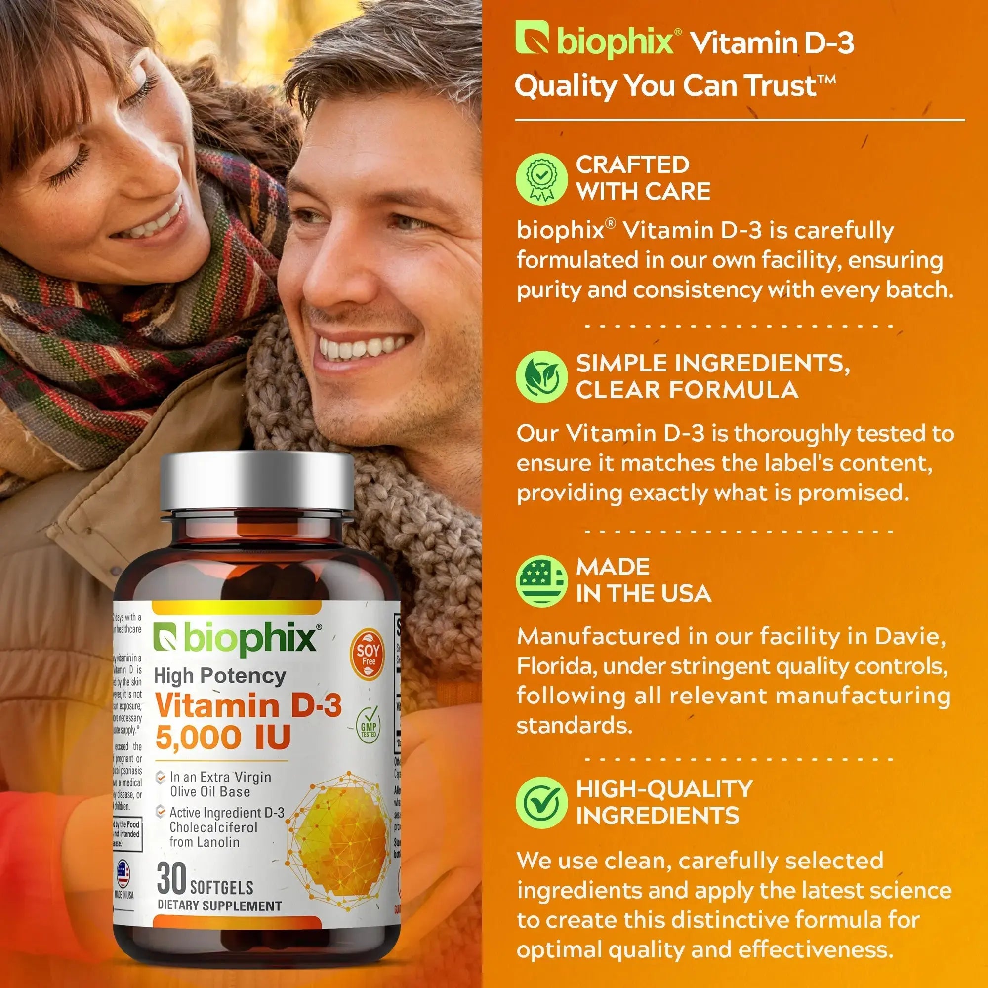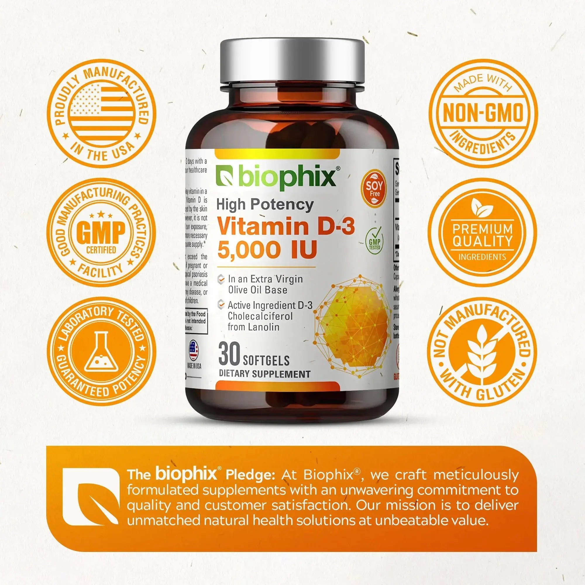 What makes Biophix Vitamin D-3 unique? Our Vitamin D-3 Softgels are corn free, non-GMO, soy free, and unlike most Vitamin D-3 softgels on the market, manufactured in an extra virgin olive oil base.
